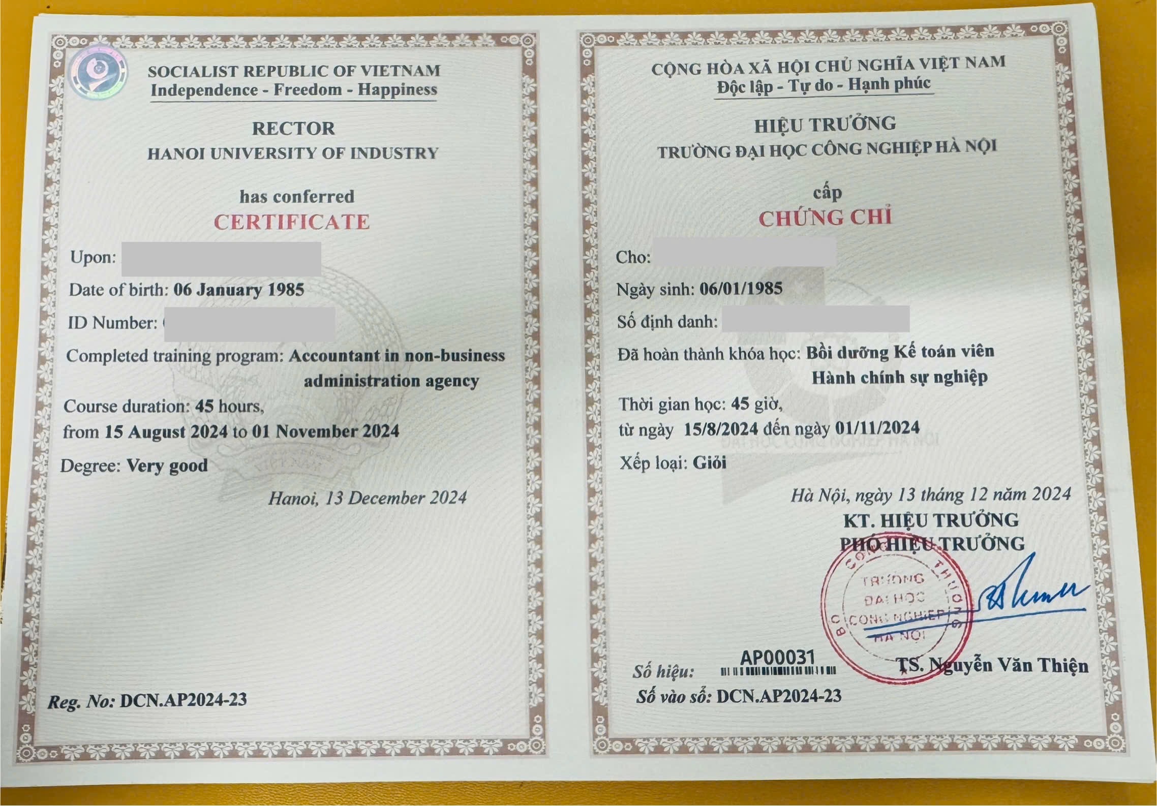 🌐 Chứng chỉ, chứng nhận: Trường Kinh tế-ĐH CN HN cấp